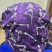 Scrub Caps Yoga Skeletons on purple fabric with matching headband. None of the hats will be the same as shown in photos due to pattern placement. Also perfect for OR nurses, radiology, and orthopedics.
