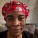 Bouffant surgical scrub hat for women New England Patriots red fabric with navy, gray and white. None of the headbands will be exactly the same due to pattern placement, your hat will not be identical to the photos shown.