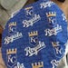 Scrub Caps Kansas City Royals fabric, MLB fabric is back! This fabric is roral blue with white and gold, Kansas City written in background. None of the headbands or hats will be exactly the same as shown in photos or centered due to pattern placement.